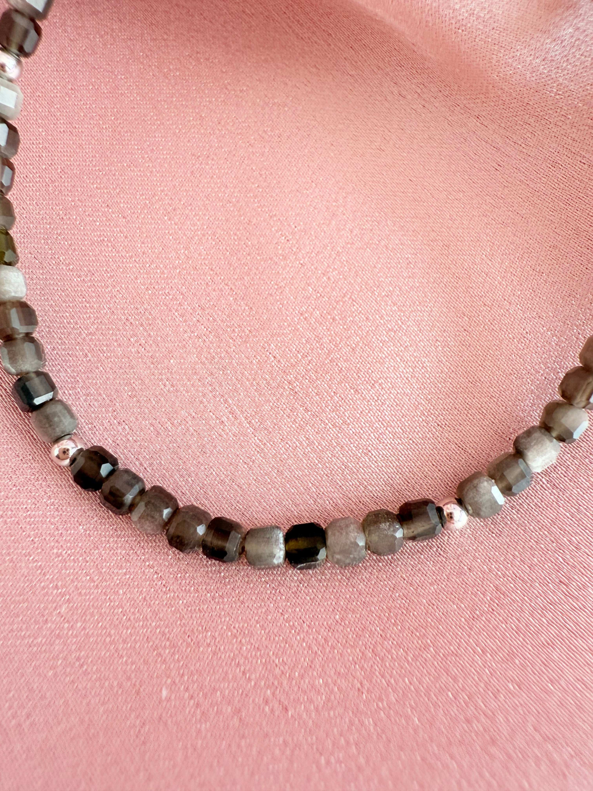 Brățara Mayris GEMS din Obsidian Auriu natural și Argint 925 este o bijuterie elegantă și plină de forță interioară. Lucrată manual cu grijă pentru detalii, această brățară emană rafinament și protecție subtilă. Obsidianul Auriu este o piatră puternică, asociată cu înțelepciunea interioară, protecția energetică și dezvăluirea adevărului personal. Este alegerea ideală pentru cei care doresc să își consolideze încrederea, să își curețe câmpul energetic și să pășească cu claritate pe propriul drum.
