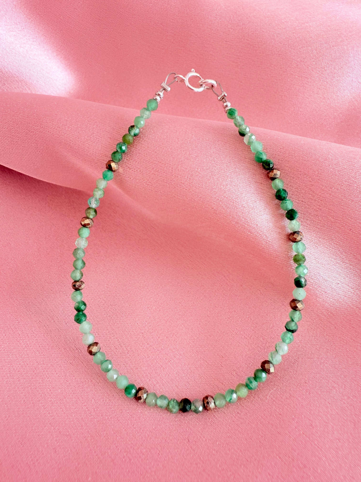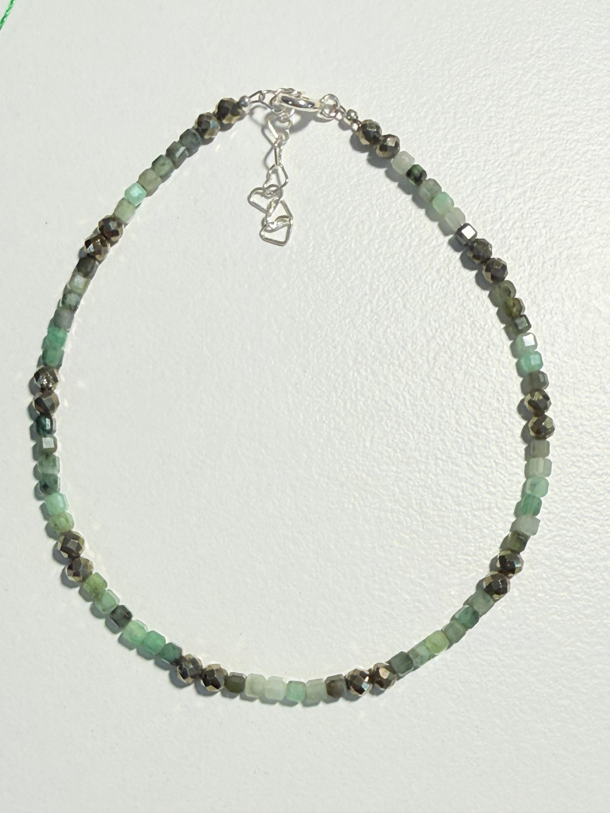 Brățara Mayris GEMS, realizată manual din Smarald natural și Pirită, este o bijuterie elegantă și plină de semnificație, creată pentru a atrage prosperitate, protecție și echilibru interior.
