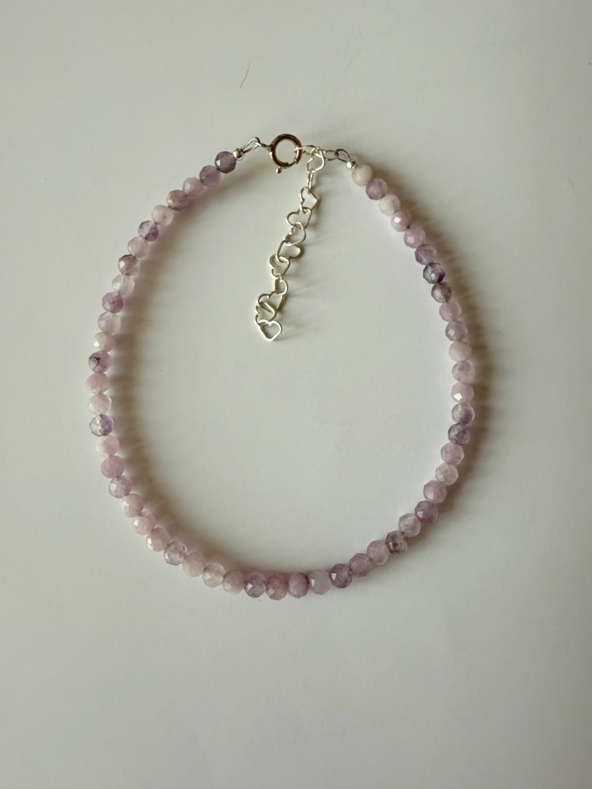 Brățară delicată din lepidolit natural, cu mărgele fine de 3 mm, montate manual pe fir rezistent, completată cu elemente din argint 925. Un accesoriu elegant și discret, perfect pentru echilibru emoțional, eliberarea stresului și susținerea unei stări de calm profund.