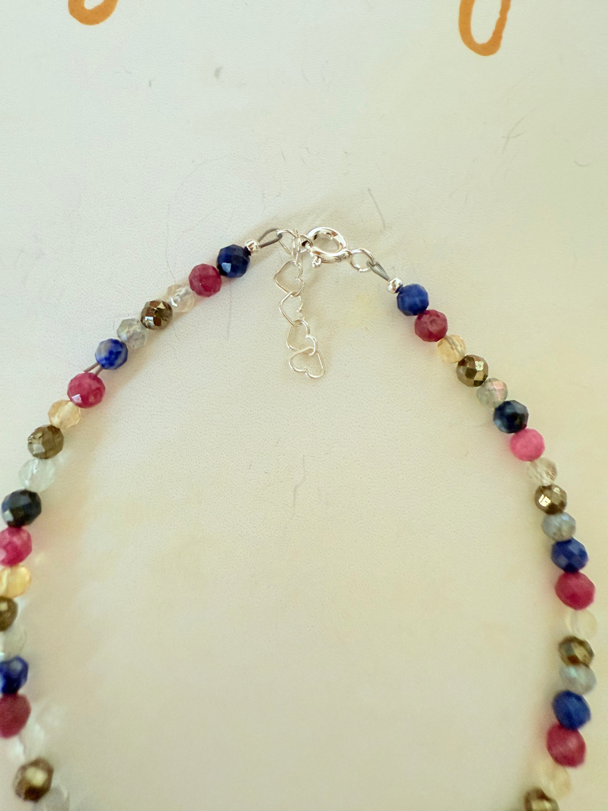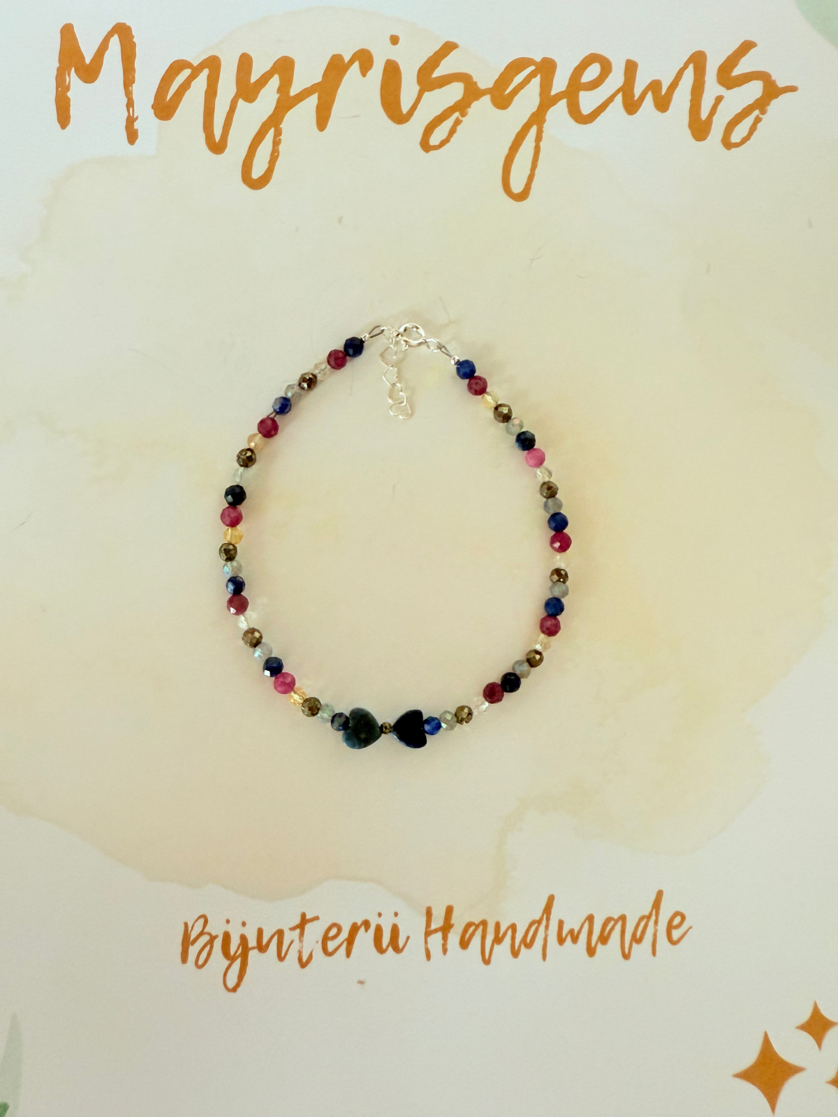 Brățara Mayris GEMS, dedicată zodiei Leu, este realizată manual dintr-o combinație regală de cristale naturale – Citrin, Granat, Rubin, Lapis Lazuli și Ochi de Tigru – completată de detalii fine din Argint 925.