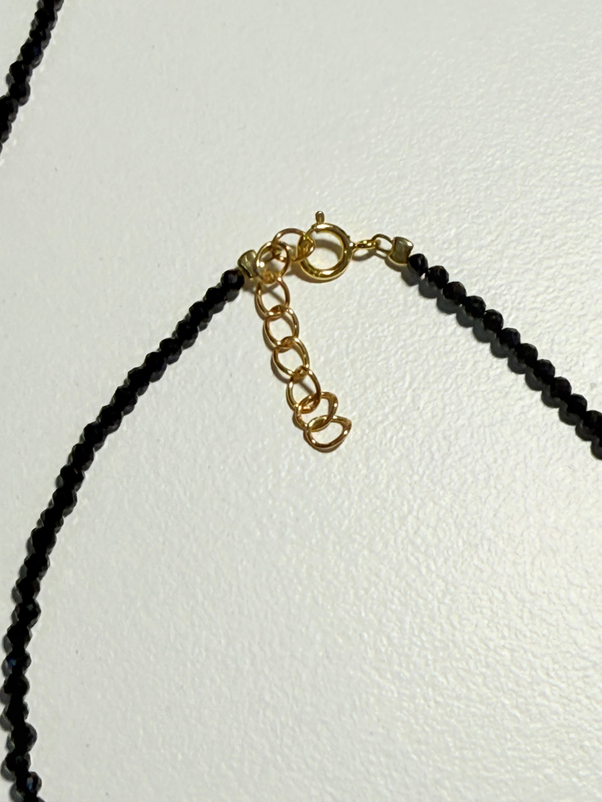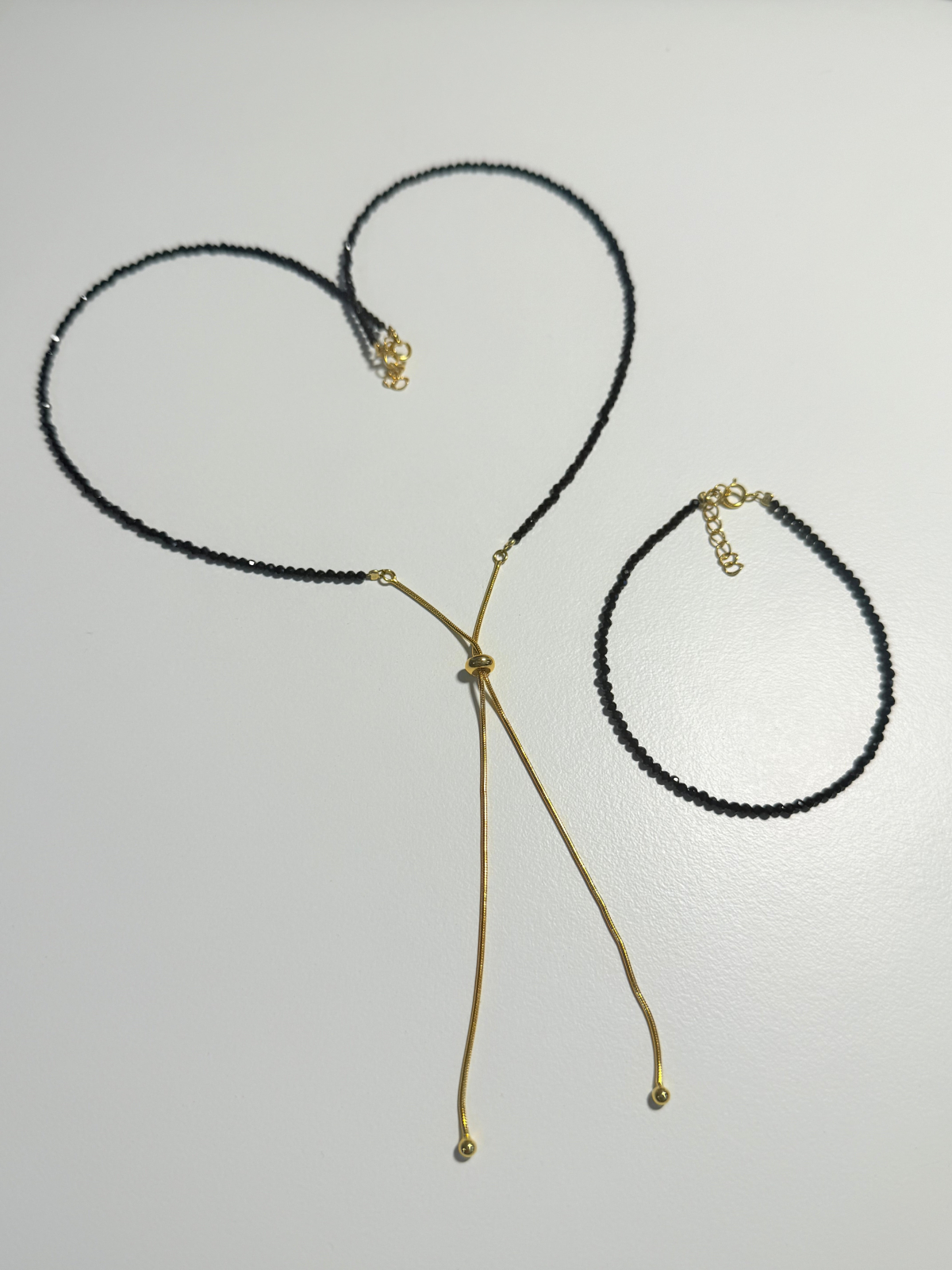 Setul Mayris GEMS este compus din colier și brățară reglabilă, realizate manual din Turmalină Neagră naturală și elemente din argint 925 suflat cu aur.