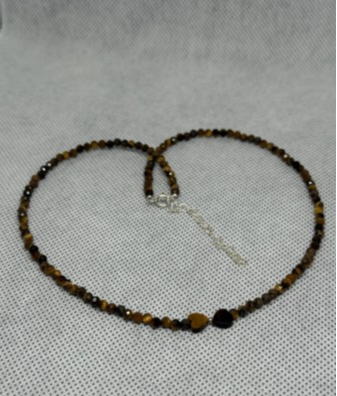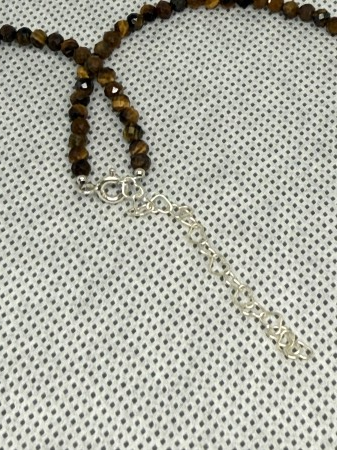 Un colier sofisticat și energic, realizat manual din Ochi de Tigru natural și completat de o fundiță elegantă din argint 925, simbol al echilibrului între forță și grație.
