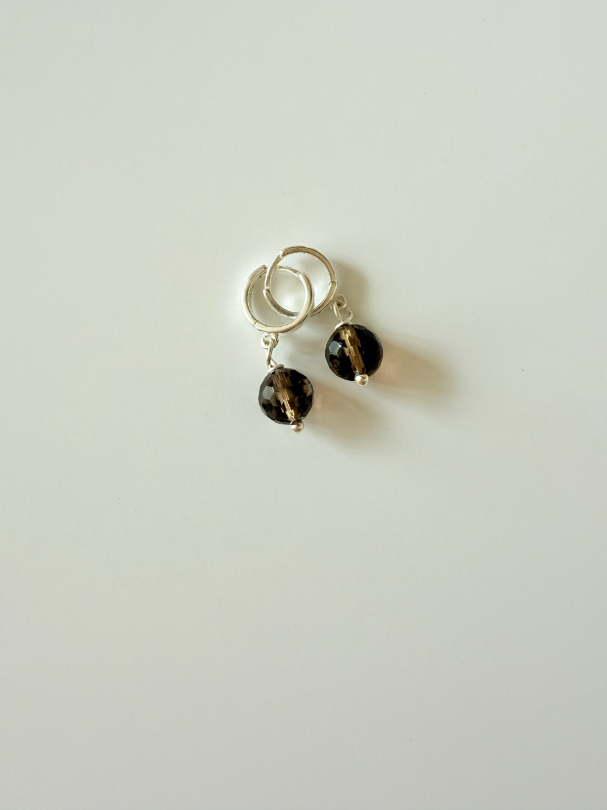 Cerceii Mayris GEMS sunt creați manual din Smokey Quartz (Cuarț Fumuriu) natural, piatră fațetată de 7 mm, montată elegant pe argint 925.