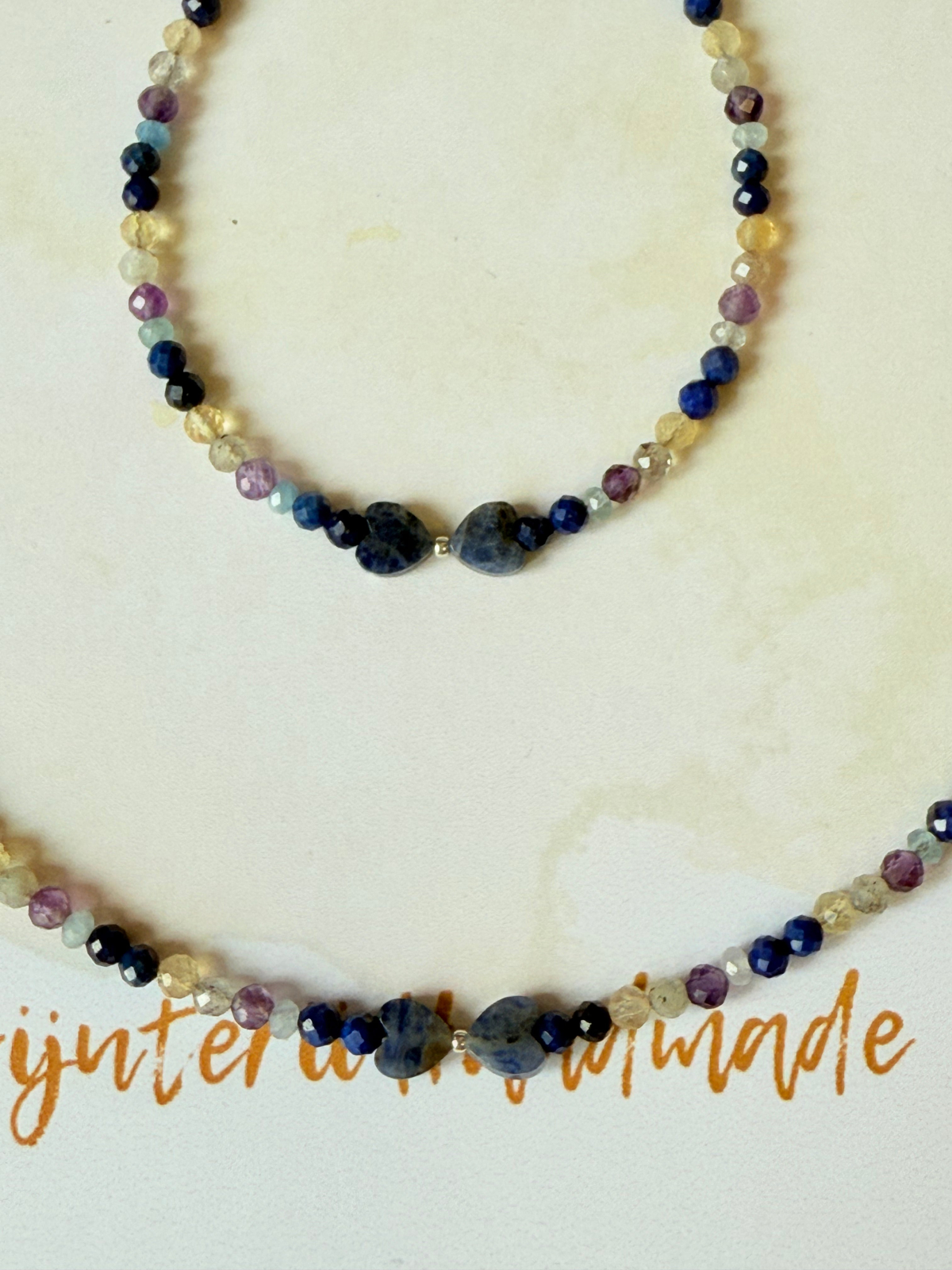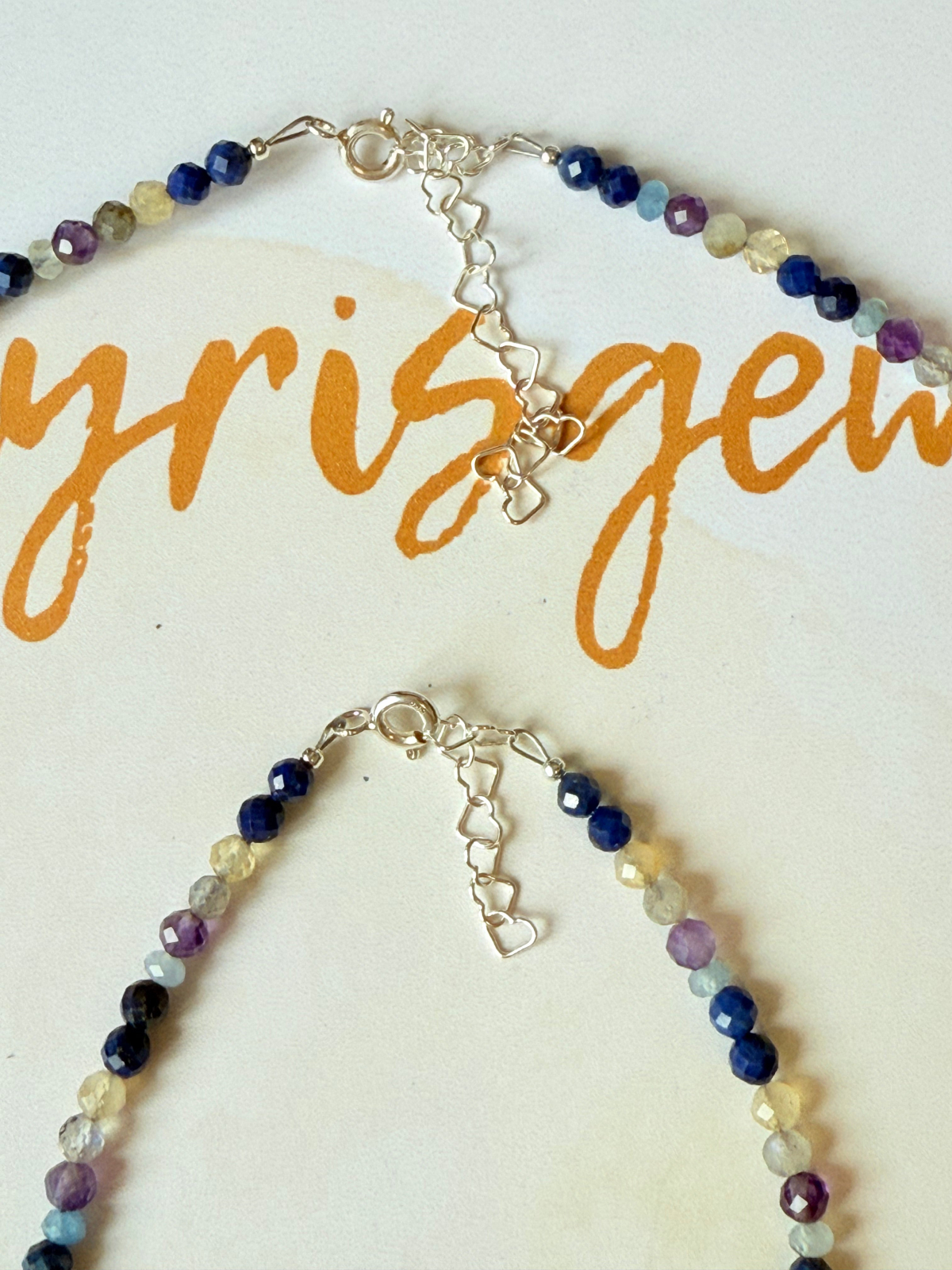 Realizat manual dintr-o combinație atent aleasă de pietre naturale – Lapis Lazuli, Citrin, Ametist, Labradorit și Acvamarin – acest duo colier & brățară din Argint 925 este conceput pentru a echilibra energia Gemenilor: minte, emoție, intuiție și claritate.
