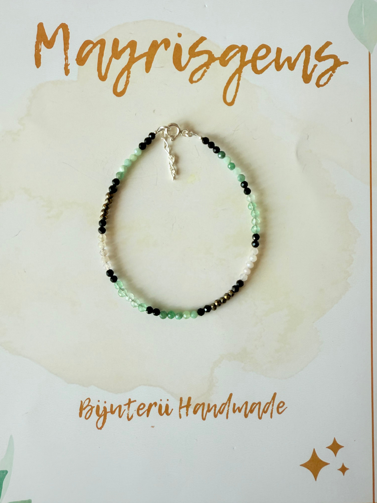 Pentru a menține energia cristalelor activă, se recomandă curățarea lor cu fum de salvie, palo santo sau pe un bol de selenit, o dată pe săptămână. Reîncărcarea se poate face la lumina Lunii sau în preajma plantelor naturale. Se recomandă evitarea contactului cu apa, parfumurile și șocurile mecanice. Păstrați brățara într-un săculeț natural pentru protecție suplimentară.